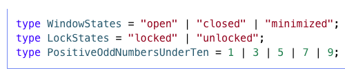 Unions는 할당할 수 있는 값을 제한하여 선언할 수 있다.