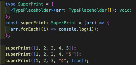 - 아래에서 사용된 TypePlaceholder가 generic이며 typescript가 자동으로 타입을 추론하여 적용된다.